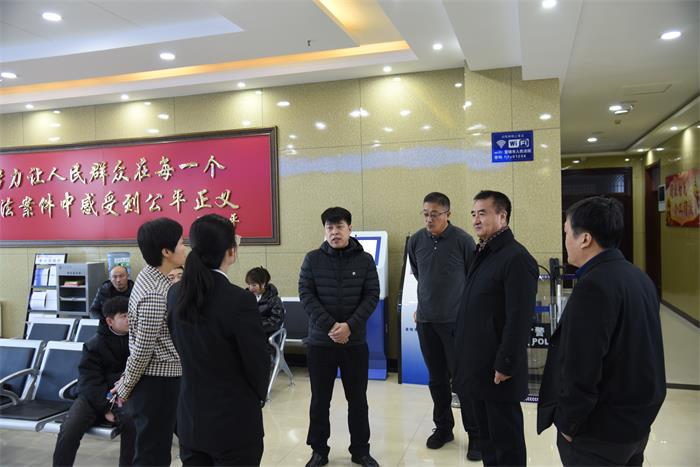 于迅书记在院党组书记、院长牛雄飞同志的陪同下,实地查看了诉讼服务中心及新建成的科技化羁押冷静室等场所。随后来到立案庭、执行局等部门与干警亲切交谈,详细询问近期的工作情况。