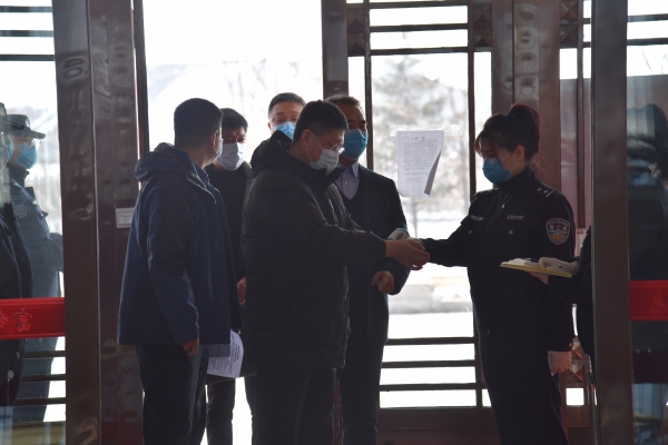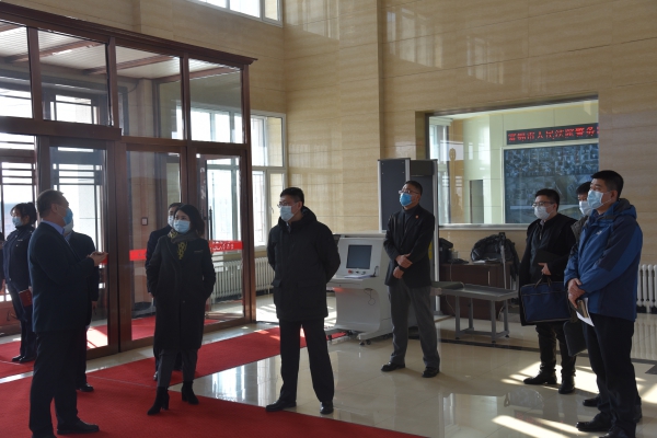 3月3日上午,富锦市委书记李源波、市委副书记、市长郝旺、副市长陈佩永一行来到富锦法院,检查指导疫情防控工作并慰问法院干警。