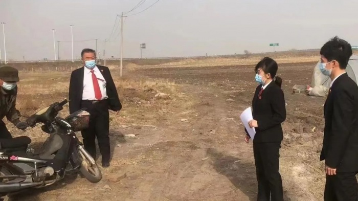 近日,王彦君法官在一起健康权纠纷案件中,按照原告提供的被告联系电话无法与被告取得联系,在通过与原告沟通后,了解到被告在锦山镇新胜村。为确保案件正常推进,减少当事人诉累,减少疫情期间的人员流动,同时兼顾春耕农忙的实际情况,王彦君法官决定动身前往被告居住的村子,采用直接送达的方式将法律文书送给被告。到达新胜村后,在村民的指引下于田间地头找到被告,王彦君法官将法律文书直接送达到被告手中,并且向被告告知相应的诉讼权利,在田间地头劳作的被告人对王法官说:“感谢法官大老远来给我送法律文书,以后我一定会遵纪守法......”