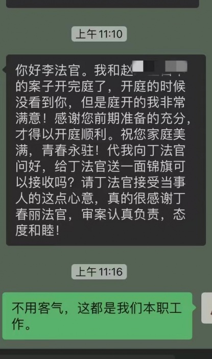 庭审结束,当事人李某发来了真挚的寄语,为法院繁忙的工作带来了一缕清风。