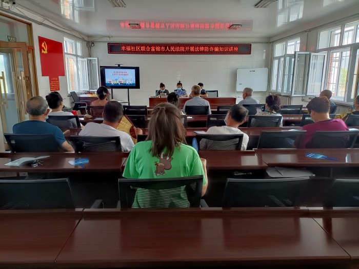 为进一步提高辖区老人防骗意识,助力老人守牢“钱袋子”,近日,富锦市人民法院刑事审判庭干警及团员干警走进富锦市幸福社区,开展预防养老诈骗法治讲座。