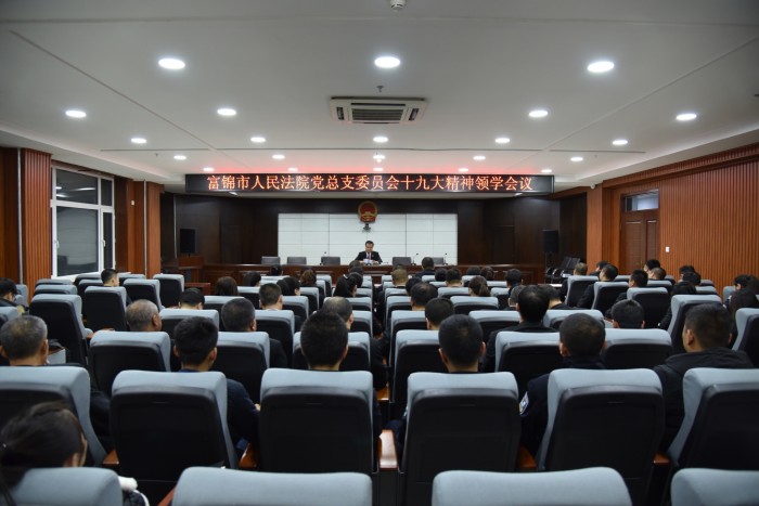 最后,院长牛雄飞同志作了总结发言,他要求全院干警:要充分认识学习党的十九大精神的重要意义,全体党员干警要原原本本、原滋原味学报告的基础上,围绕报告提出的新思想、新理念、新论断、新举措,切实提高学习的广度和深度;学习形式要多样化。各支部都要认真组织学习,每名党员都要主动学、随时学、用心学,不要只拘泥于会议学、宣讲学等被动形式,要力求在学懂、弄通、实做上下功夫,真正做到外呼于行、内化于心;要把学习成果切实贯彻落实到具体的审判工作中去,要办出高质量的案件,要让每一起案件都经得起推敲,每一起案件都做到无懈可击。我们每一个党员干部都要自觉把思想和行动统一到党的十九大精神上来,时刻保持高度的政治敏锐性和工作责任感,以新的精神状态和奋斗姿态投入到扎扎实实地完成年底的各项工作任务上来。把自己的精力都倾注于审判事业上,要锐意进取,奋发图强,用辛勤汗水捍卫法律的权威和尊严,以公正之心践行法官的神圣职责,为富锦法院的发展做出更大的贡献。