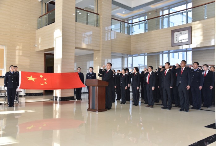 今天上午,按照佳木斯中级人民法院的统一部署,富锦法院举行“宪法日”宣誓活动。上午9时,宣誓活动开始。面对鲜艳的五星红旗和庄严的国徽,在富锦法院党组书记、院长牛雄飞同志的带领下,法院机关全体干警高举右手,庄严宣誓:“忠于中华人民共和国宪法,维护宪法权威,履行法定职责,忠于祖国、忠于人民,恪尽职守、廉洁奉公,接受人民监督,为建设富强、民主、文明、和谐的社会主义国家努力奋斗!”“宪法日”宣誓活动的举行,旨在彰显宪法权威,弘扬宪法精神,激励和教育全体法院干警忠于宪法、遵守宪法、维护宪法,进一步增强审判事业使命感、责任感、荣誉感。