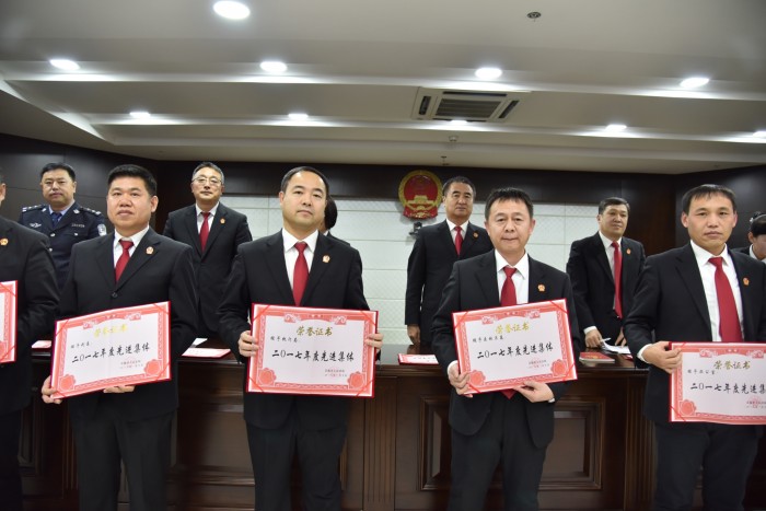 会上,首先由院党组成员、党总支书记王洪成同志宣读了表彰决定,对2017年度涌现出的先进集体和个人进行了表彰,并颁发了证书。随后,院党组成员、副院长赵宇飞同志代表院党组作《2017年度工作总结报告》,全面回顾总结2017年度工作,谋划2018年度工作。接下来,院党组成员、副院长于天明同志回顾总结了2017年度审判执行工作开展情况,在肯定成绩的同时,他也指出了当前我院审判工作中存在问题和不足,并对下步审判工作开展提出了具体要求。