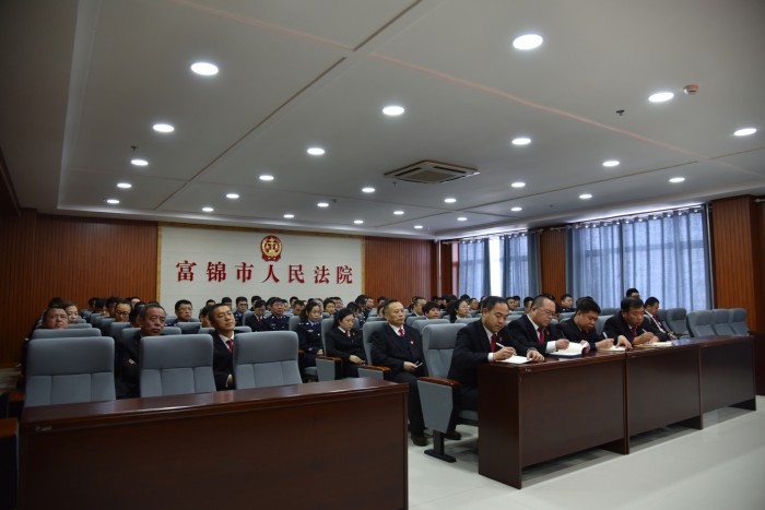 最后,由院党组书记、院长牛雄飞同志以“紧扣新时代要求,扎实推进审判工作”为题作了总结讲话。他说:回顾过去一年的工作,我们富锦法院一步一步走到今天,各项工作都取得了优异的成绩,应当总结的方面很多,但其中很重要的方面就是我们全院干警都很珍视集体荣誉感。成绩的取得源于我们全院干警不懈怠、不放松,坚持奋斗,砥砺前行。我们富锦法院是一支公正司法、一心为民,让党放心、让人民满意的审判队伍。无论是副院长、中层干部、还是普通干警,也无论是老同志还是年轻同志,都在各自岗位甘于为我院的审判事业无私奉献,他们有一个共同的名字——“富锦法院人”。他们用实际行动诠释了党的宗旨。他指出:目前,我院的审判工作任务及其它各项工作压力都很大,在这种情况下,我们每位同志都必须清醒摆正个人与集体、全局与局部之间的关系。每个人都要牢固树立为我们法院的发展贡献力量的良好愿望,并为这种发展付出自己的努力。我们从事的审判工作,平凡而崇高,艰辛又琐碎,需要我们为之付出心血,倾注热情,更需要每个人珍惜和维护自身的形象。“空谈误国,实干兴邦”,目标的实现依赖于务实的行动。我们法官这个职业正处于前所未有的发展机遇期。既然我们选择了这个职业,那么就整装上路,守住初心,负重前行。最后,他说:“自信人生二百年,会当水击三千里”。中国进入新时代,这是一个讲忠诚、比奉献的新时代,全体干警要以习近平同志新时代中国特色社会主义思想做指引,牢记责任、恪尽职守,肩负起党和人民赋予的审判使命。我院今日之新是昨日我们大家共同奋斗的结果,明日之新要看我们大家今日作为之虚实。立足新起点、开启新征程,我们每位同志都要永葆法官本色,通过出力流汗办好案,用实际行动为富锦法院的建设做出新的贡献!