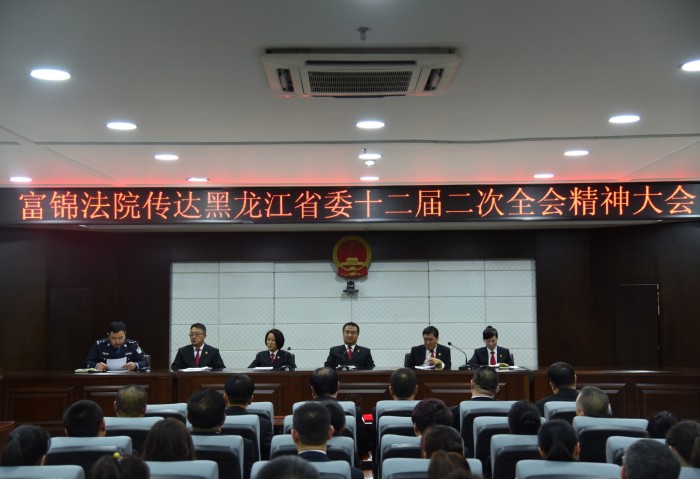 2018年1月12日,富锦法院召开传达黑龙江省十二届二次全会精神会议,会议由院党组成员、党总支书记王洪成同志主持,全体干警参加会议。
