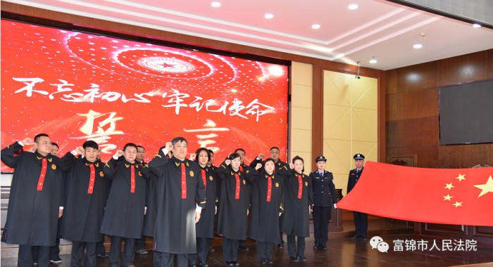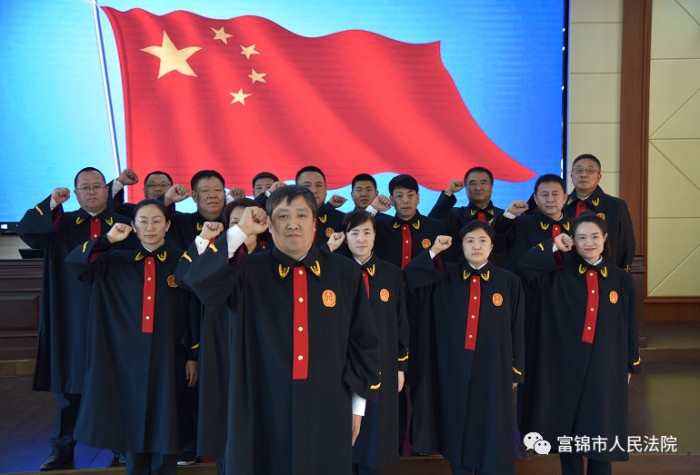 “我是中华人民共和国法官,我宣誓……”4月2日,随着一曲中华人民共和国国歌奏响完毕,富锦法院全体员额法官身着法袍,壮严举起右手,在领誓人院党组成员、副院长于天明同志的带领下,面向国旗,再次齐诵誓词。此次重温法官誓词活动对富锦法院的员额法官来说,是法治的又一次洗礼,更是再次吹响砥砺前行的号角。