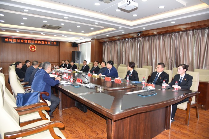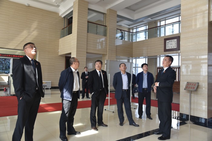 5月7日,佳木斯市中级人民法院党组书记、院长韩辉、党组成员、执行局局长王刚、研究室主任王彦东、信访办主任刘大伟一行到富锦法院对信访、执行工作进行检查指导。富锦市委书记赵励军同志、市委政法委书记于迅等同志陪同检查。