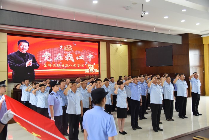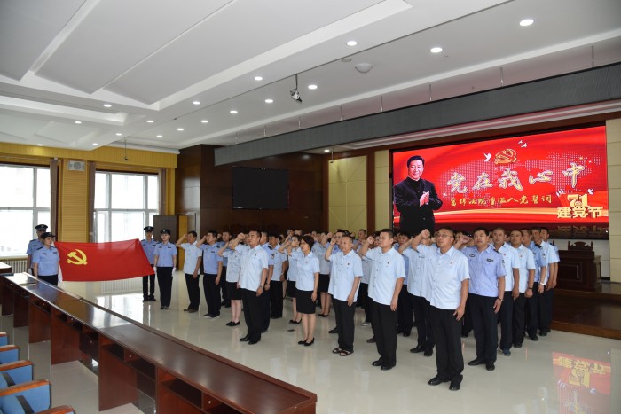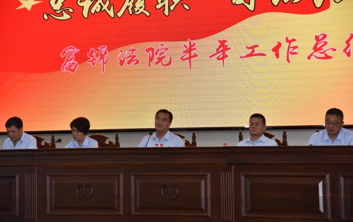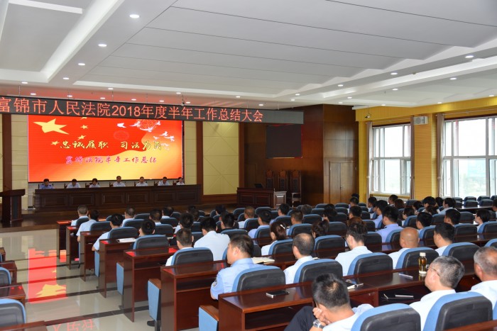 会前,院党组书记、院长牛雄飞同志带领全体党员干警重温入党誓词,并集体观看了富锦法院司法警察训练专题片。会上,由院党组成员、副院长于天明同志回顾总结上半年民事审判工作开展情况,并安排部署下步工作开展;院党组成员、副院长董君同志以“确保‘四个基本’破解执行攻坚”为题作上半年执行工作总结;院党组成员、党总支书记王洪成同志从六个方面回顾总结上半年党建工作开展情况。