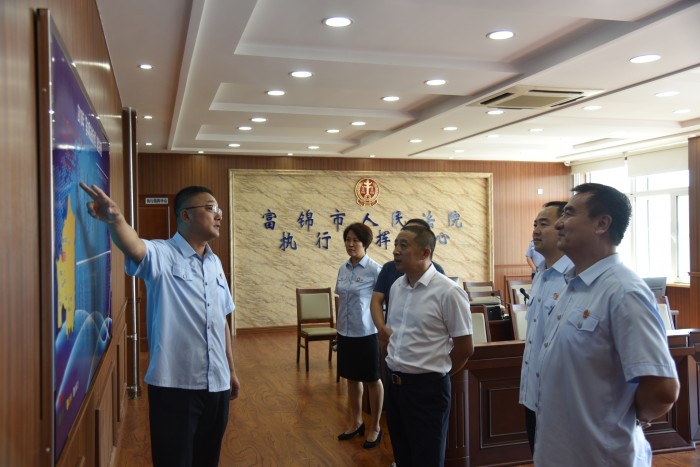 7月16日,佳木斯市中级人民法院院长韩辉同志一行,来到富锦法院检查督导执行工作,并看望慰问奋战在一线的执行干警。