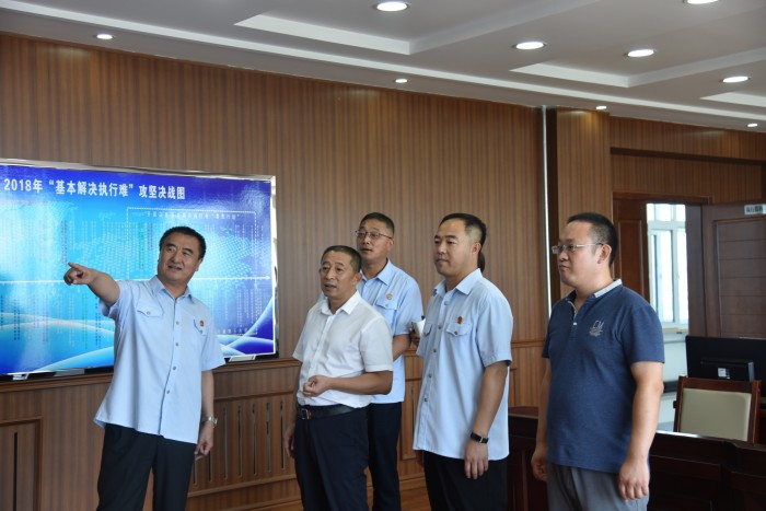 韩辉院长在听取富锦法院党组书记、院长牛雄飞同志关于“攻坚基本解决执行难”工作情况汇报后,充分肯定了富锦法院党组对决胜基本解决执行难工作的高度重视、全力保障和全体执行干警的辛勤付出。