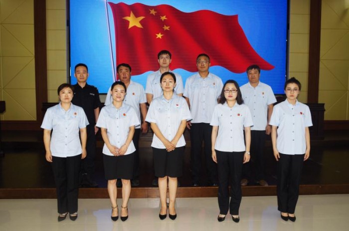 6个司法审判团队,都有由胸前佩戴党徽的司法干警党员组成的先锋岗、党员模范岗,并成为一道奋发向上风景线。