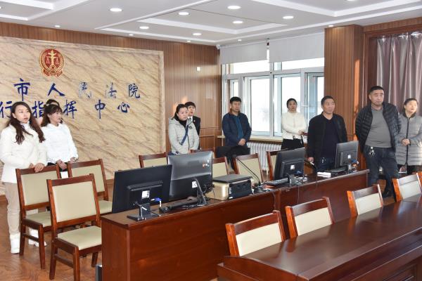 活动中,大家在法院工作人员的带领和讲解下,先后参观了法警监控指挥中心、诉讼服务中心、刑事远程提押室、家事调解室、党员之家活动室、科技法庭等场所。同时工作人员还向大家介绍并演示了富锦法院庭审直播系统、远程接访系统、远程提讯系统以及12368诉讼服务平台,展示了富锦法院的信息化建设成果。