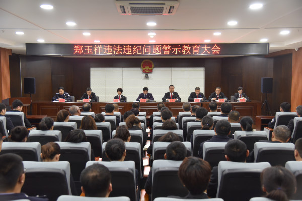 富锦市委常委、纪检委书记、监察委主任吕村笙同志在讲话中指出:郑玉祥违法违纪案上级监委、法院都十分重视,法院党组利用周末时间组织召开这次警示教育大会,很及时,体现了院领导班子政治认识高、鉴别力强,通过身边事教育身边人,相信这次大会一定会取得预期效果,并对法院的党风廉政建设、队伍建设、干部廉洁执法都起到积极推动作用。他要求:一要正确认识当前反腐败的形式和查处郑玉祥案件的影响和意义。司法腐败会严重损害党和政府的形象,败坏党风、政风和社会风气,动摇人们对法治的信仰。郑玉祥违法违纪问题的查处,在短期内可能会对市法院系统造成一些负面影响。对此,我们要抱有正面的、积极的、正确的思想认识;二要以郑玉祥为反面教材,加强对干部的思想教育。要充分利用郑玉祥这个身边的反面典型,进一步加强党员干部的党性教育、德政法纪教育及风险教育;三要通过郑玉祥案件举一反三,加强干部监督和管理。郑玉祥违法违纪问题的发生,固然有其个人原因,但不可否认,也存在着对干部监督管理责任缺失的问题。希望法院能以此为鉴,强化日常监督管理,切实推动干部队伍建设。