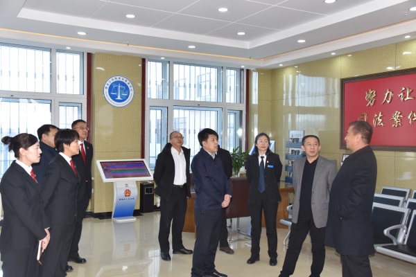 3月28日,佳木斯中级法院院长韩辉同志一行到富锦法院对“努力让老百姓打官司不求人”等七项工作落实情况进行专项审务督察。富锦市委常委、政法委书记于迅同志、富锦法院党组书记、院长牛雄飞同志陪同督察。