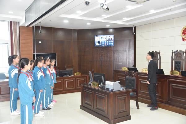 在数字审委会会议室同学们集体观看了“富锦法院司法警察训练专题片”。随后工作人员从法律是什么、如何做自觉遵纪守法的小学生、增强自我防范意识等方面进行了讲解,引导学生遵纪守法,学会用正确、适当的方法保护自己。学生们兴奋地表示,通过走进法院,学到了不少法律知识,切实感受到了法律的威严,今后要做一名知法、懂法、守法的好学生。