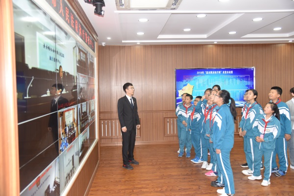 活动开始前,工作人员向受邀的学生们介绍了此次活动的目的和意义。随后,在工作人员的引导下,同学们饶有兴趣地参观了诉讼服务中心、法警监控指挥中心、执行指挥中心、科技法庭、党员之家图书阅览室、体能训练室等场所。在科技审判法庭,同学们对审判席充满着好奇心和新鲜感,在讲解员的指导下,纷纷走上审判台,争先恐后的当起了“小法官”,体验法庭的神圣和庄严。